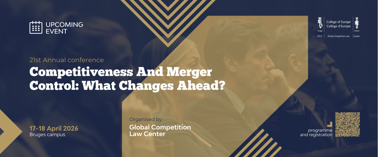 The Global Competition Law Centre (GCLC) is pleased to invite you to the 21st Annual Conference, entitled "Competitiveness and Merger Control: What Changes Ahead?" at the College of Europe (Bruges campus).