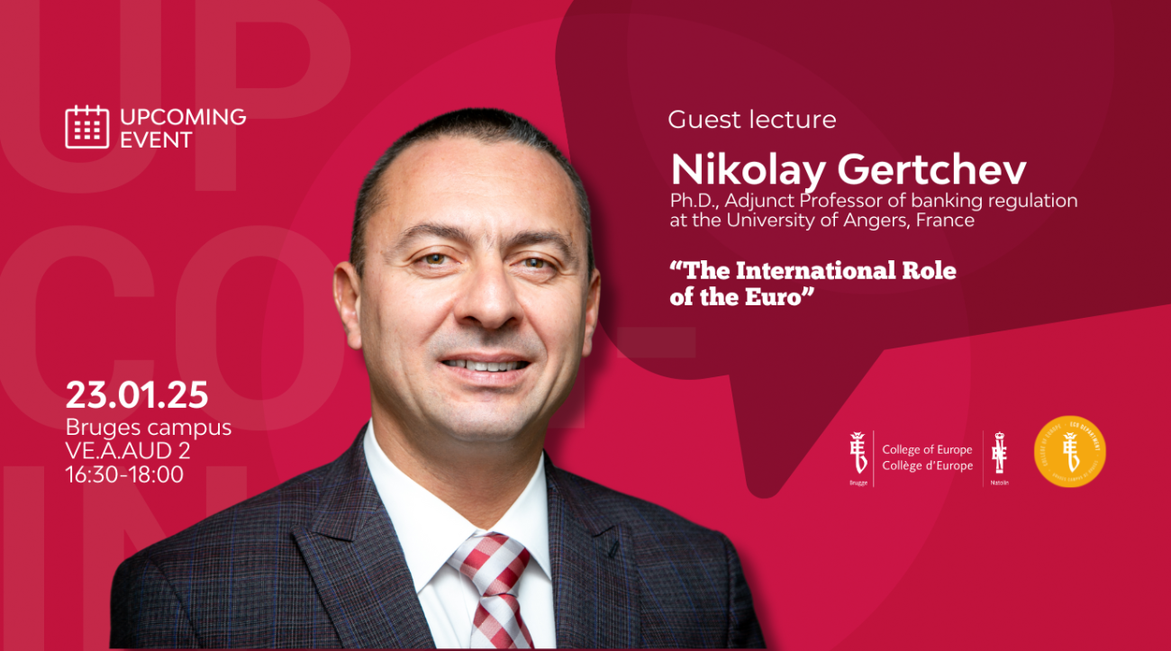 Nikolay GERTCHEV, Ph.D., adjunct professor of banking regulation at the University of Angers, France, will give you the answers to these pressing questions on January 23rd, 2025, during a guest lecture on “The International Role of the Euro”.